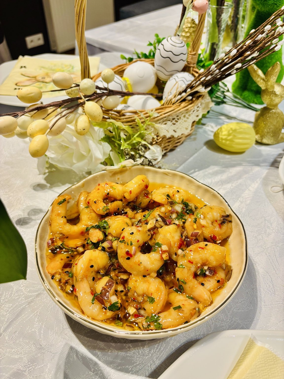 Ostrzejsza, pełna charakteru wersja naszych krewetek, która przenosi nas prosto do Azji. Głęboka marynata na