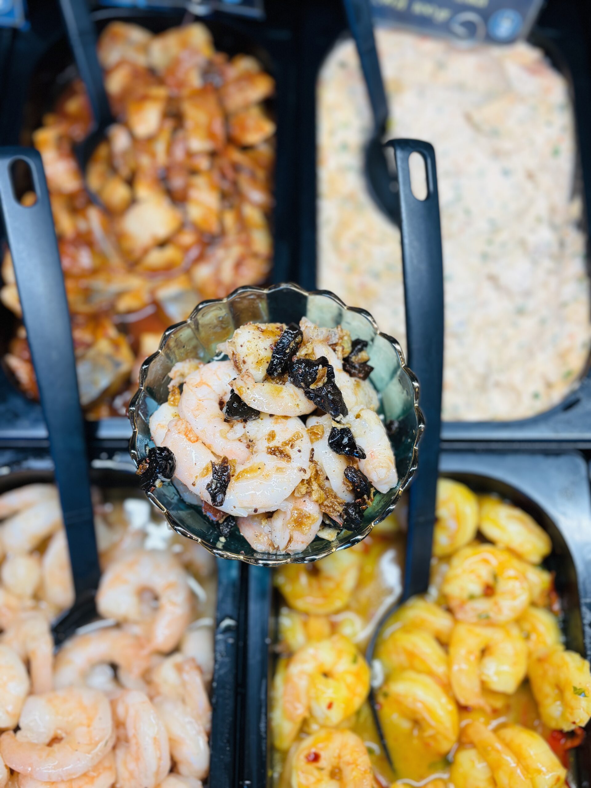 Krewetki marynowane ze śliwką wędzoną i przyprawami korzennymi Soczyste krewetki w duecie z aromatyczną wędzoną śliwką, prażoną cebulką i nutą korzennych przypraw. Delikatny cynamon i goździki nadają im smak jesieni – lekko piernikowy, głęboki i rozgrzewający. To porcja pełna jesiennej elegancji, która zaskakuje i uzależnia smakiem.