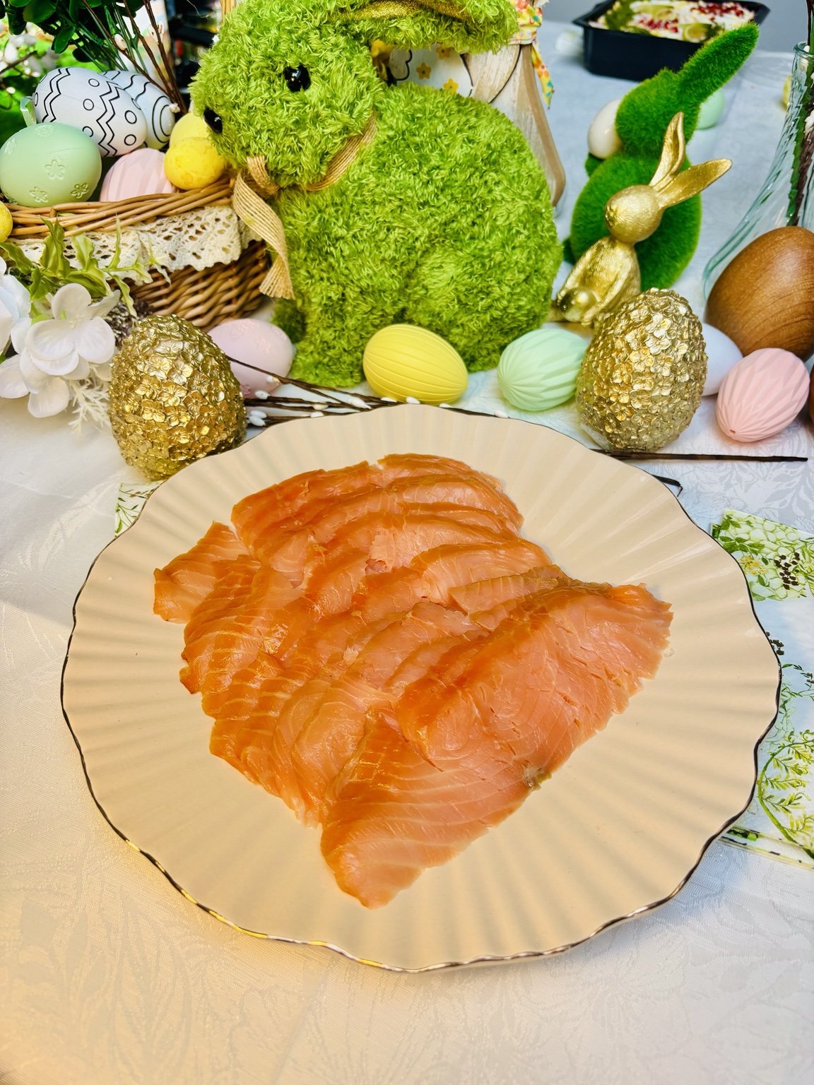 Klasyczne, starannie wykrojone plastry łososia wędzonego bezpośrednio w Norwegii. Proces ten pozwala na
