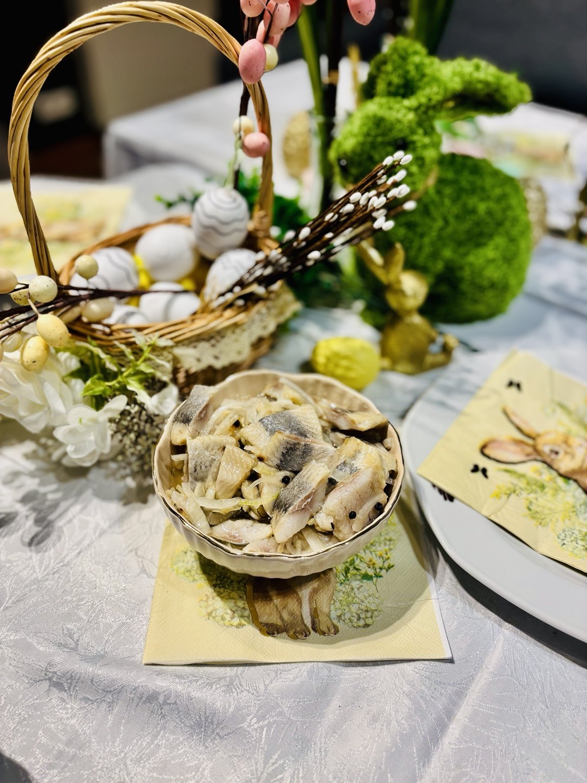 oleju rzepakowym, który idealnie podbija maślany smak ryby. Dodatek chrupiącej, świeżej cebuli oraz grubo